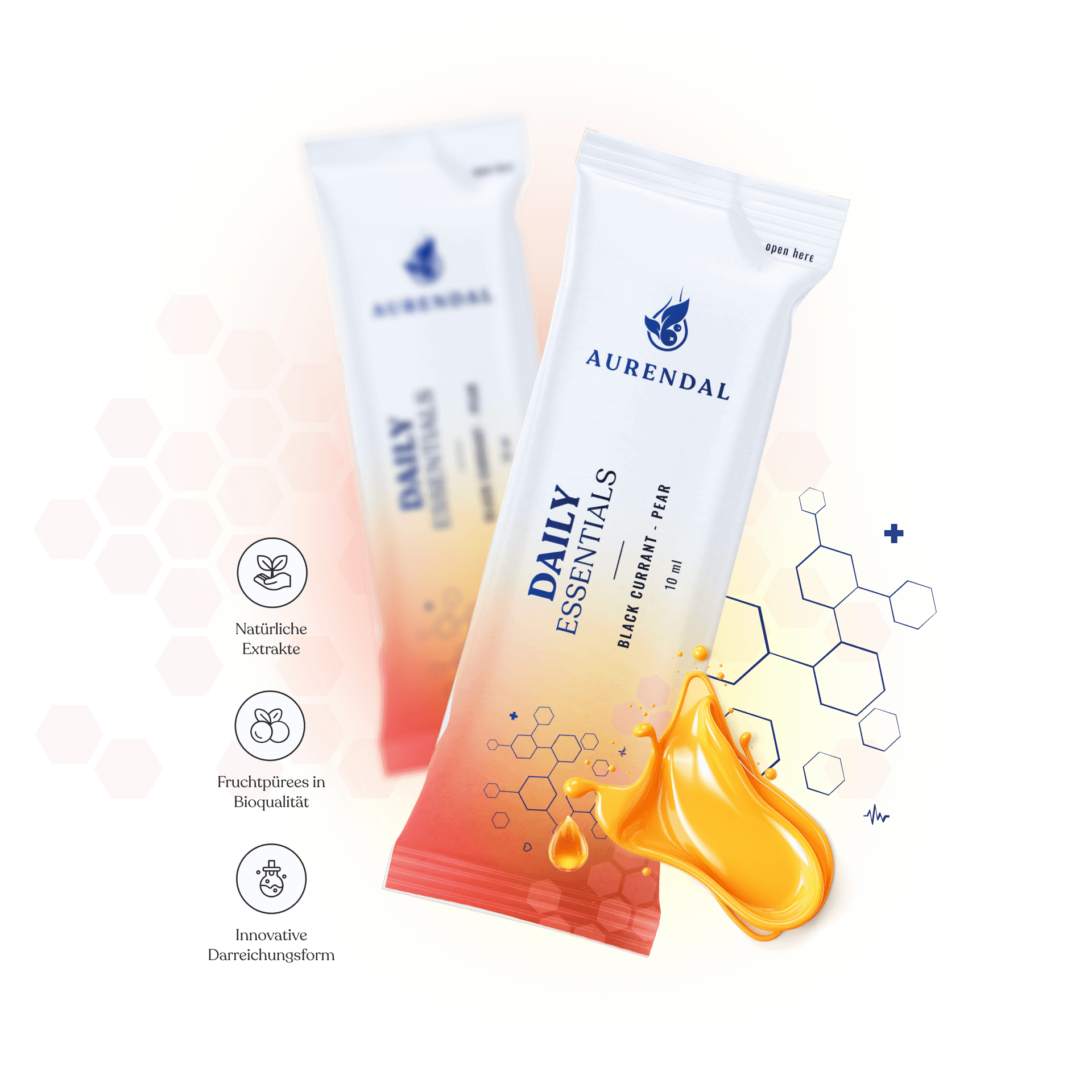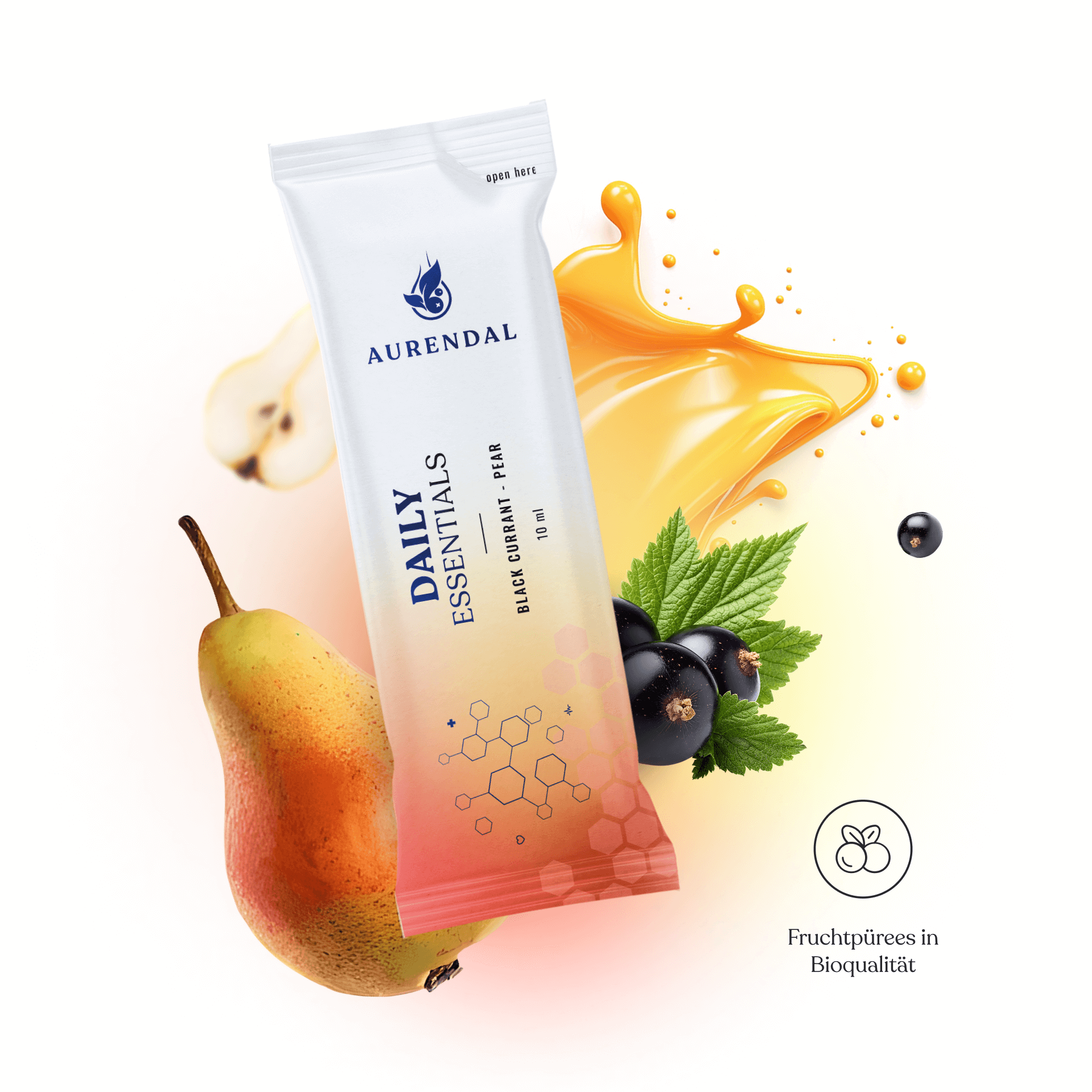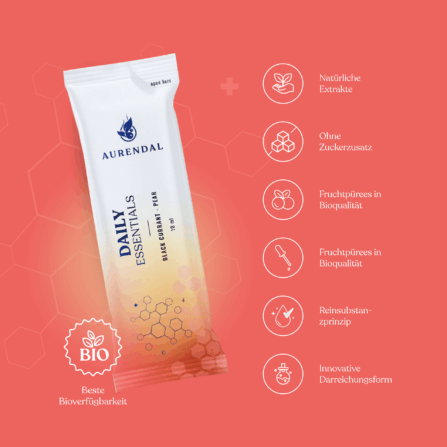 - Long-term support for energy production: Daily Essentials covers the entire B vitamin complex (B1, B2, B6, B12), which is essential for long-term energy production. These vitamins are crucial for energy metabolism and a deficiency can lead to tiredness and fatigue. In combination with magnesium and iron (LIPOFER™), the body is continuously supplied with the nutrients it needs to provide long-term energy.