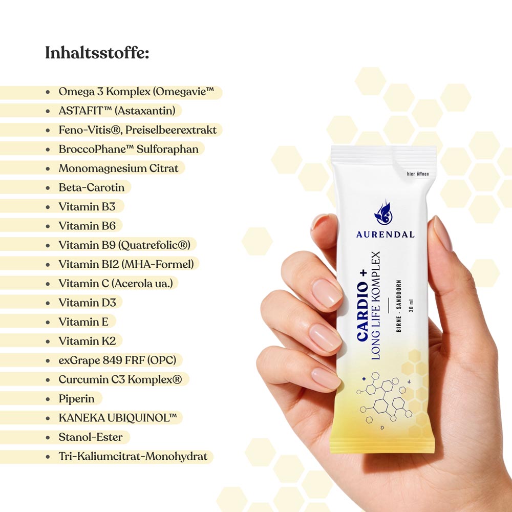 - Cardiovascular health: Ingredients such as Feno-Vitis®, KANEKA Ubiquinol™, and Curcumin C3 Complex® reduce the risk of heart attacks and strokes. These ingredients improve blood circulation, lower blood pressure and prevent vasoconstriction.